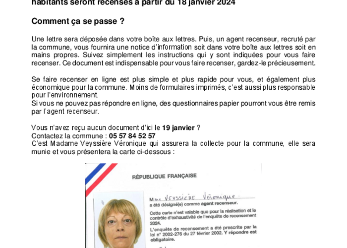 Le recensement à Cabara démarre le 18 janvier 2024