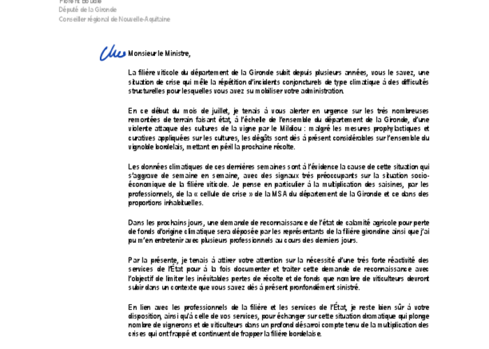 Vous trouverez ci-joint une correspondance du député Florent Boudié adressée à Marc Fesneau,…