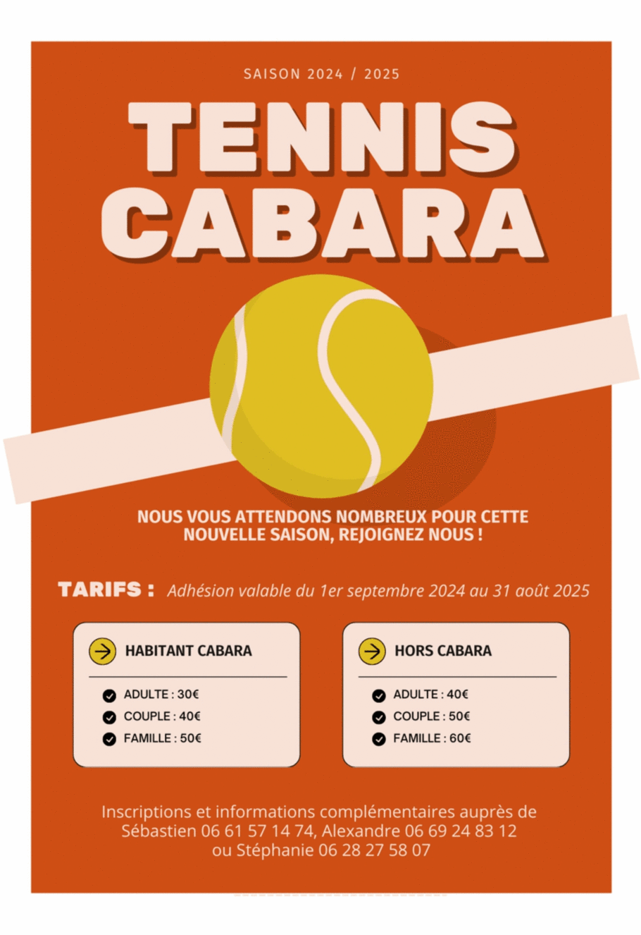 Inscriptions auprès de Sébastien, d'Alexandre ou de Stéphanie (voir flyer)