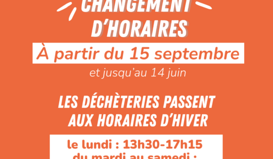 SEMOCTOM : passage aux heures d'hiver 10/09/2025 Fini la canicule ! A compter du 15 septembre, les déchetteries du SEMOCTOM passent aux horaires ...